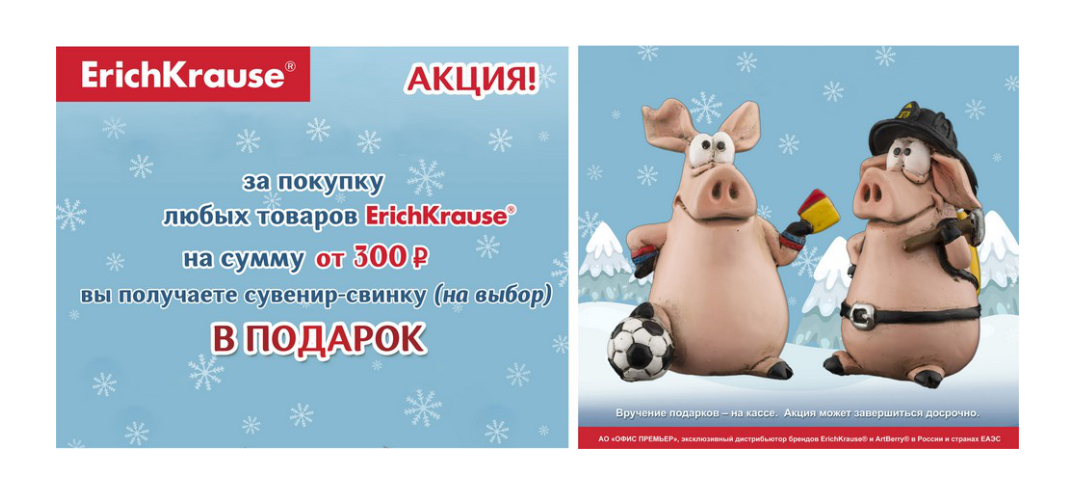 Купи любые товары ErichKrauze на сумму ОТ 300 РУБЛЕЙ и получи сувенир свинку В ПОДАРОК!