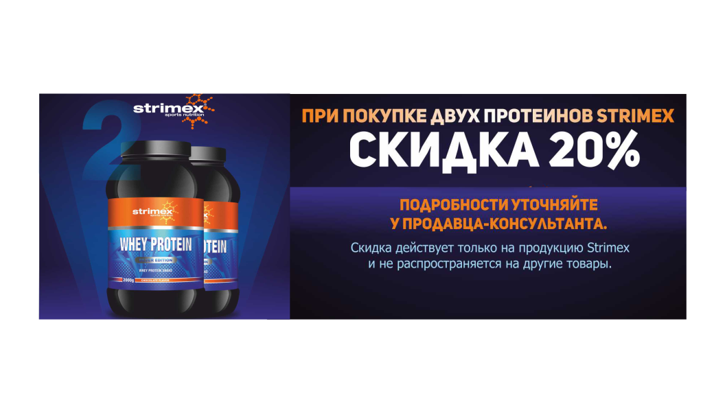 При покупке двух протеинов немецкой марки Strimex — скидка 20%