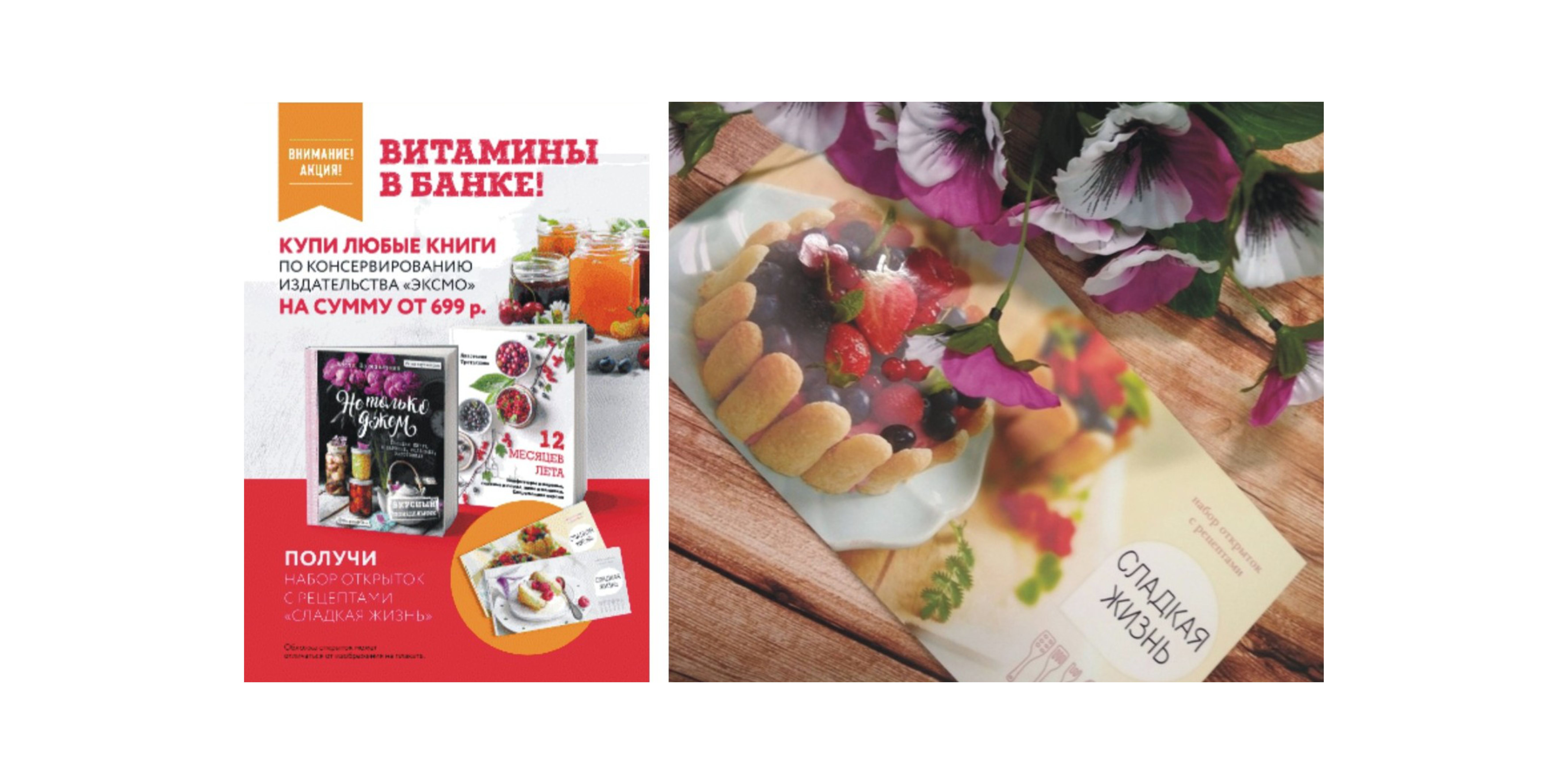 Витамины в банке! ХОТИТЕ, ЧТОБЫ ЛЕТО НЕ КОНЧАЛОСЬ? ЗАКОНСЕРВИРУЙТЕ ЕГО! С 1 августа в сети магазинов Дом книги стартовала акция «ВИТАМИНЫ В БАНКЕ»! При покупке любой книги по консервированию издательства ЭКСМО на сумму от 699 рублей набор открыток с рецептами СЛАДКАЯ ЖИЗНЬ в подарок! Количество подарков ограничено, торопитесь! Ждем Вас в Доме книги на 4…