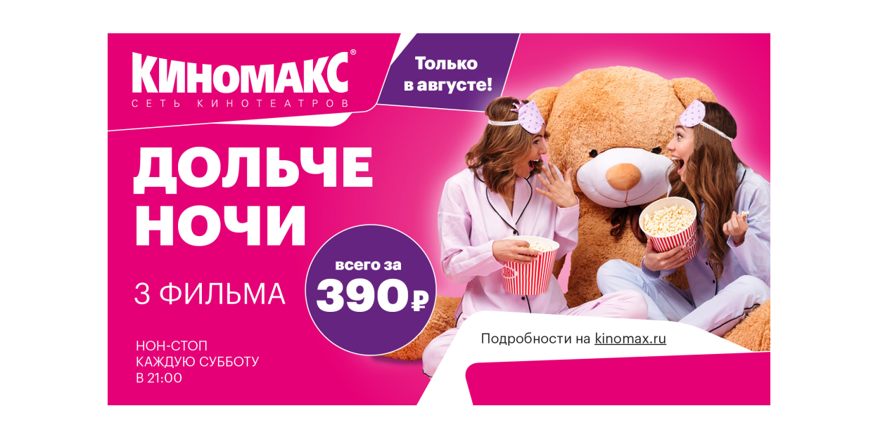 «Киномакс 3D Мегаполис» проведет субботние нон-стопы в августе  Акция «ДольчеНочи» — нон-стопы за 390 рублей — будет идти в кинотеатре «Киномакс» еще три субботы подряд: 11-го, 18-го и 25-го августа. Во время нон-стопов кинобар предложит зрителям два напитка по цене одного.  В режиме нон-стоп гостям покажут три фильма, в том числе блокбастер или картину —…