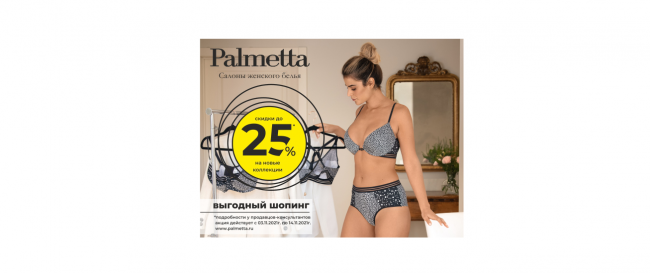Ещё больше коллекций и скидок! Теперь и на модные купальники! Продлеваем грандиозные скидки в Palmetta до 19 сентября: модное и комфортное женское белье со скидками до -60%! Успевайте обновить пляжный гардероб! С 3 сентября еще больше коллекций купальников со скидками! Яркие и классические оттенки, гладкие и фактурные полотна — для активного и спокойного пляжного отдыха!…