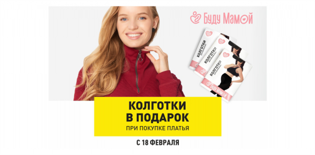 Только по 2 марта при покупке платья из ассортимента на сайте и во всех розничных магазинах «Буду Мамой» тёплые колготки  В ПОДАРОК! Подробные условия акции на сайте.
