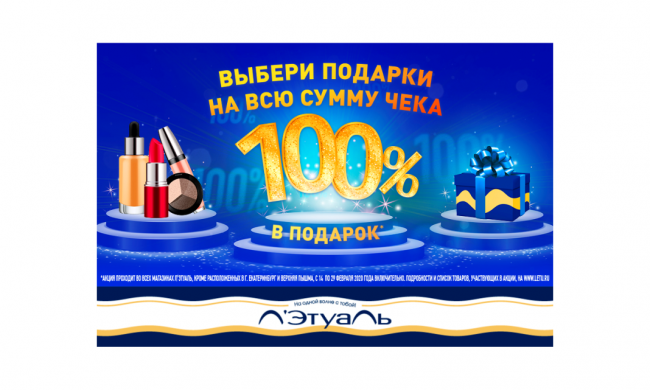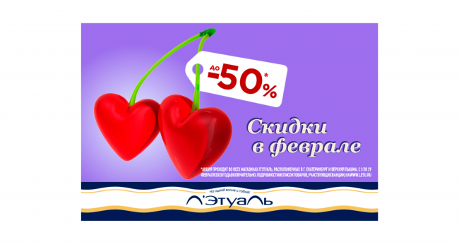 Срок проведения акции: 3–29 февраля 2020 г. Место проведения: -магазины сети Л’Этуаль, расположенные в гг.Екатеринбург и Верхняя Пышма; -интернет-магазин www.letu.ru и мобильное приложение Л’Этуаль с доставкой в г.Екатеринбург и Верхняя Пышма. Специальные цены на товары, участвующие в акции! Сертификаты eCARDS и Пластиковые подарочные сертификаты нового образца при оплате товара действуют. Акция не суммируется с другими…