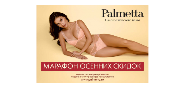 С 5 сентября 2019 г. в салонах женского белья Palmetta начинается сезонная распродажа очаровательного белья торговой Palmetta.
