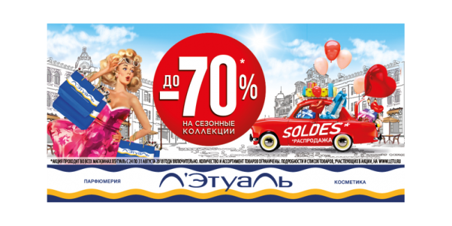 Скидки до 70% на сезонные коллекции в Л’Этуаль