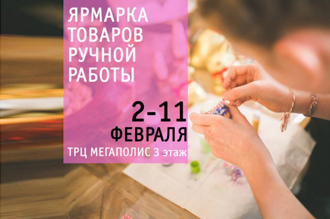 Со 2 по 11 февраля в ТРЦ Мегаполис пройдет ярмарка изделий ручной работы от лучших мастеров города. Одежда, игрушки, украшения и предметы интерьера, хранящие тепло рук — замечательный подарок себе и близким. Ярмарка пройдет на 3 этаже ТРЦ Мегаполис. От эскалатора налево.