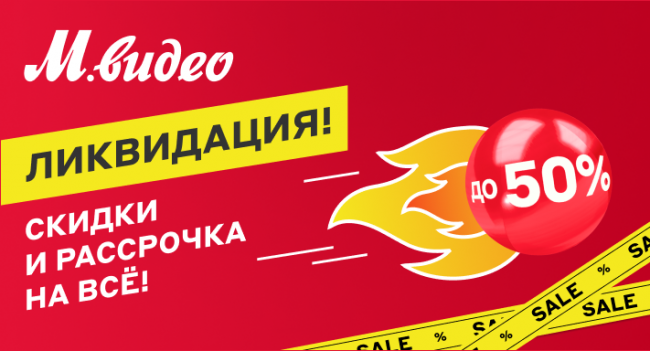 Ликвидация в М.Видео! Скидки до 50% и рассрочка на всё! Количество товаров ограничено.