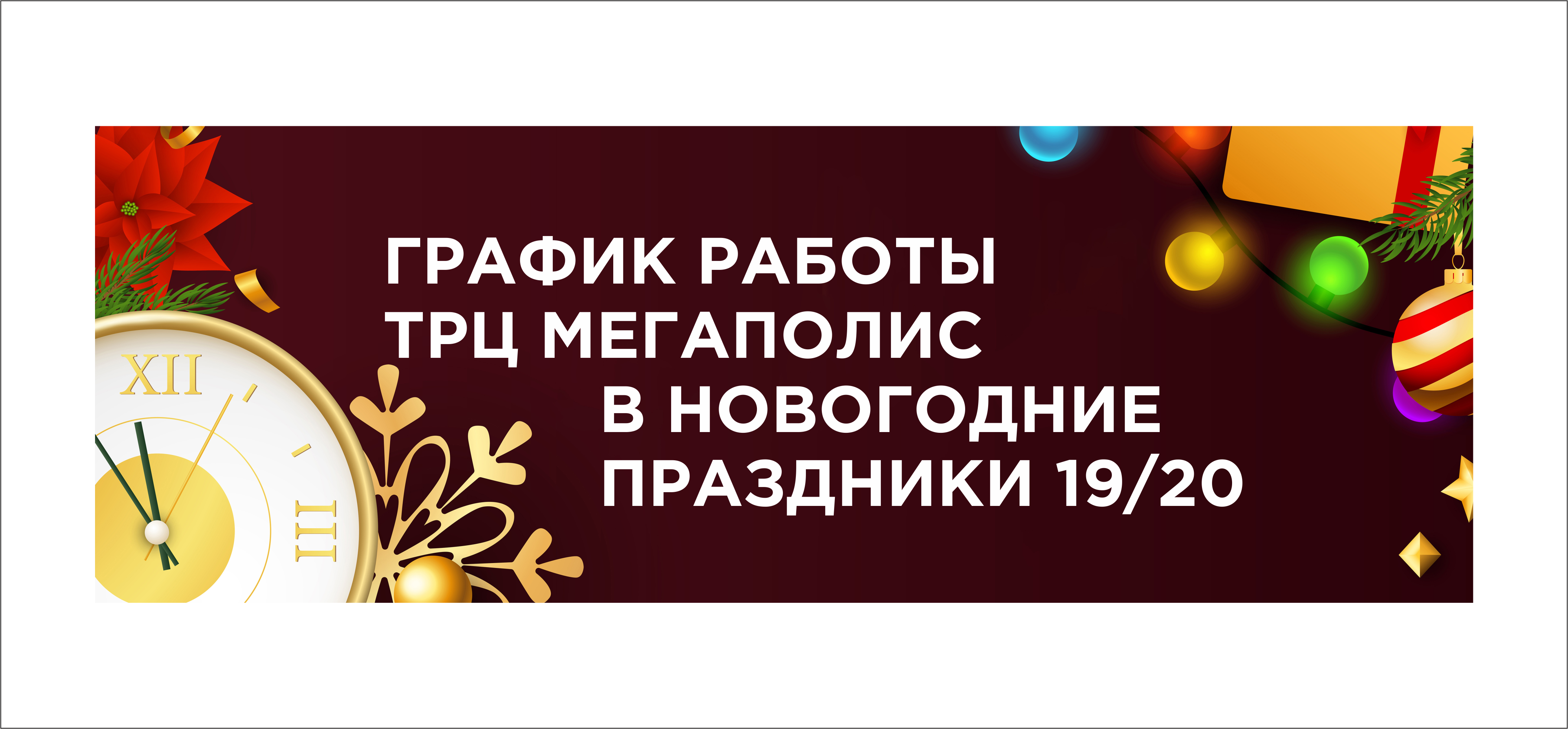 30 декабря 2018: с 10-00 до 22-00 31 декабря 2018: с 10-00 до 19-00 1 января 2019 в ТРЦ Мегаполис не работает, кроме исключений, 2 января — по обычному режиму. — Универсам «РАЙТ» : с 28.12.2019 — 30.12.2019 года  с 8:00 до  23:00, 31.12.2019 года с 08:00 до 19:00, 01.01.2020 года с 14:00 до 23:00,  с 02.01.2020…